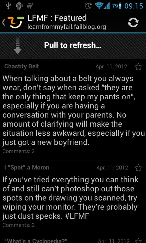 Smiler can load a specific number of new pages from your favourite quotation databases for instant reading without Internet access (in offline mode).