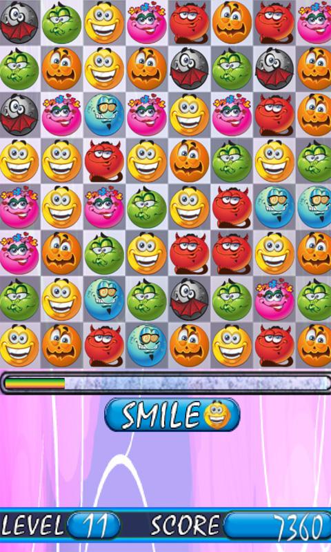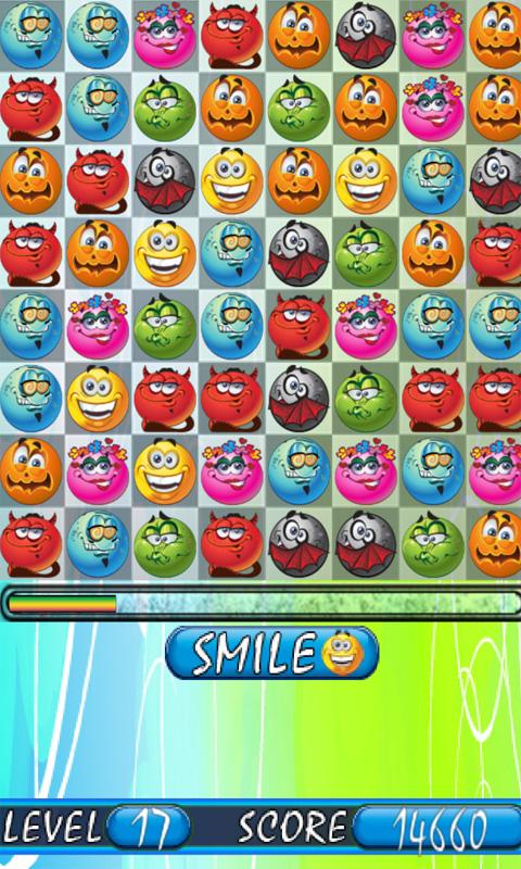 Simply tap the screen, swipe and match 3 or more of the cool smiley jewels, blast and smash through countless levels of colorful smiley gems!