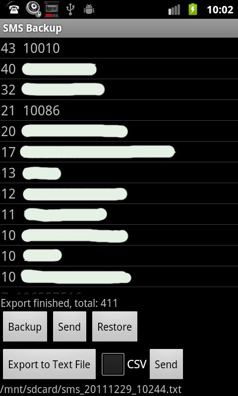 * Export all SMS to Text File or CSV File