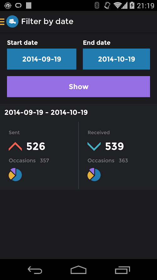Use SMS Counter to get an overview of your incoming and outgoing text messages.