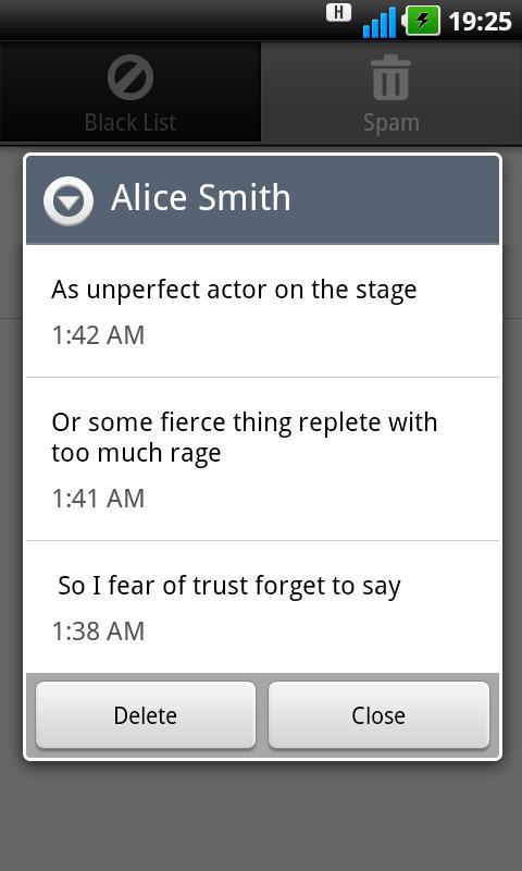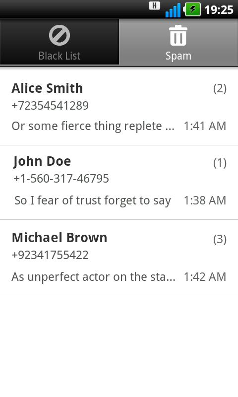 You are tired of spam? SMS Filter rids of it. Simply add the number to the blacklist and annoying messages will no longer disturb you.
