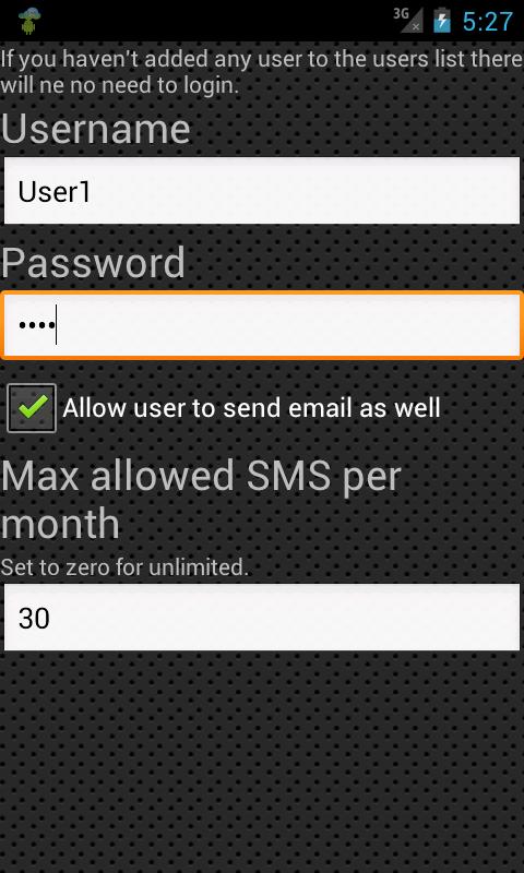 - Add multiple users to every SMS Gateway and optionally set a limit to the amount of SMS the user can send for every month