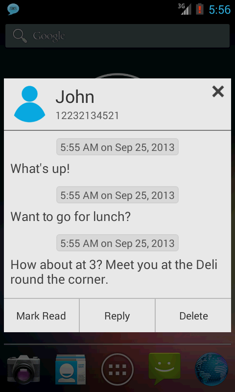 SMS Notifier (SMS Popup) displays your SMS or message in a smart and simple way. It provides a better status bar notification and message popup with quick reply, delete and mark as read options. A very small app with low memory consumption. You can customise SMS notifier very easily.