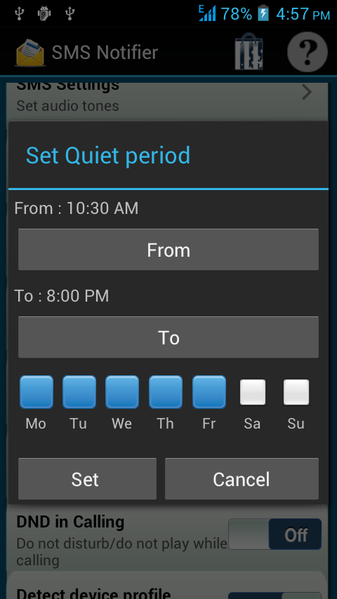 • You can set the Quiet Period where the Application remains inactive, like if your office timings are 9 AM to 5 PM then in this interval application will remain quiet.
