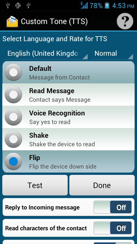 • App will read the message through Shaking the Device, Saying Yes, Flipping Down side
