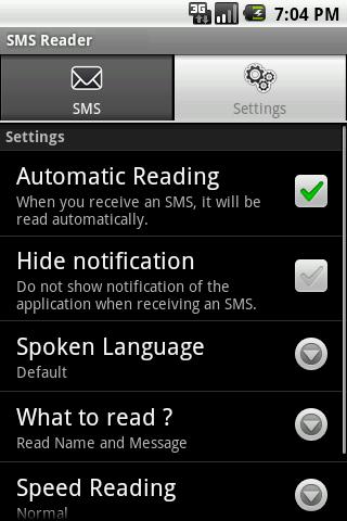SMS Reader is an application that automatically captures incoming SMS and reads it aloud for you..