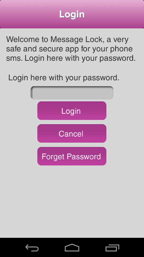 Do your friends always borrow your phone , and you are always worried about your sms and messages ? if yes then here is a solution to lock your sms and messages with a secure password and can be only access by you . If any one wants to try to access or recover your account then you will get and email alert so your sms and messages are totally secure with this sms lock app and this sms lock is free.
