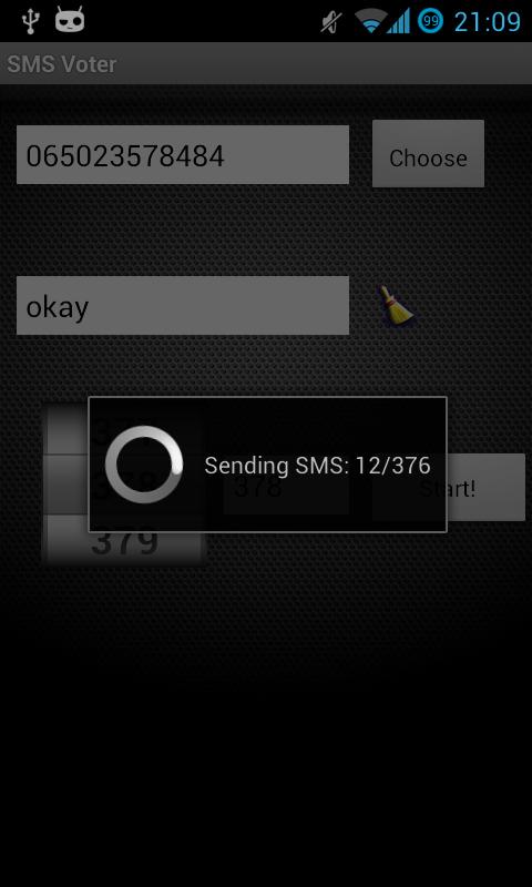 SMS Voter sendet eine beliebige Anzahl an SMS mit beliebigem Inhalt an eine beliebige Nummer.