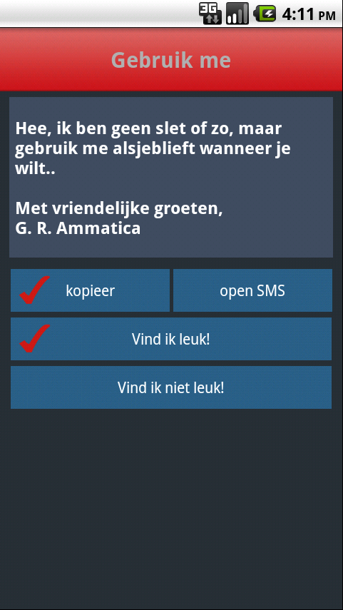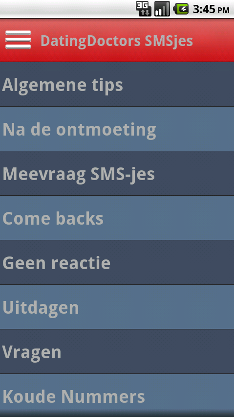 De Dating Doctors zouden de Dating Doctors niet zijn als we niet wat voorbeeldjes en flirttips voor je in deze SMS2Date app beschikbaar hebben. Daarbij kun je ook je eigen SMS-jes delen met anderen via onze app. Met onze app kun je ook gelijk je favoriete SMS versturen naar de vrouw. Copy, paste en send! En je zult zien in heel veel gevallen gaat ze nu veel makkelijker met je op date. Kwestie van oefenen en doen.