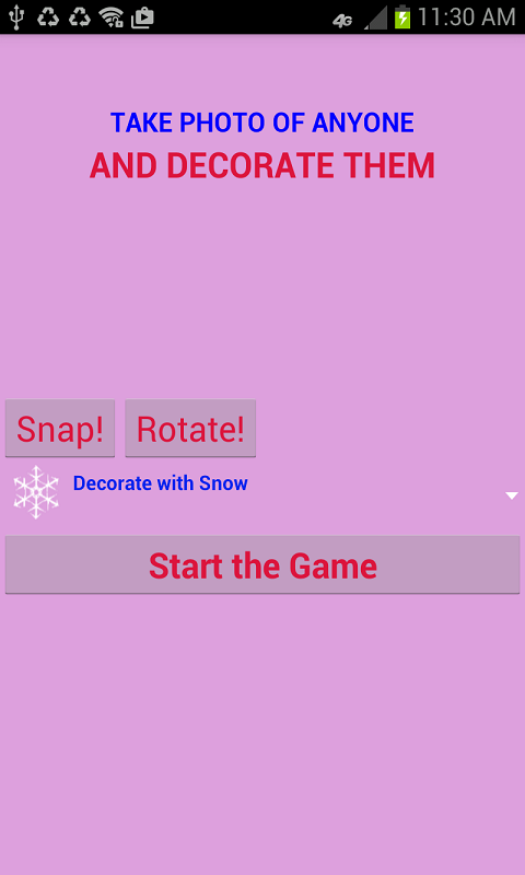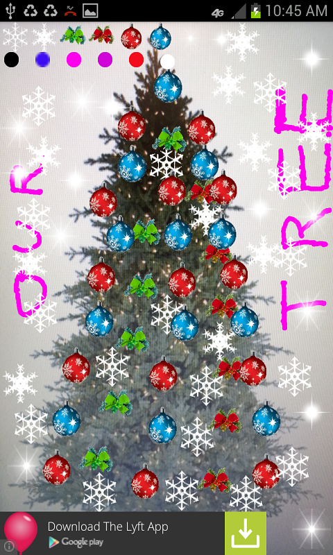 Snap and Decorate holiday family Photo / tree for Christmas / holidays seasons. Several brushes for seasons are available and write greetings on them. Its a fun game to take picture of any person or object and decorate for holidays and Christmas and share on social media or make Wallpaper for your device. Take a picture save it and rotate it make it straight and then select brushes to decorate with and decorate it. Capture screen with screen capture app and share on social media.