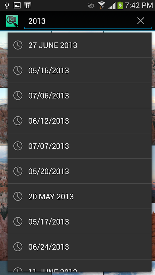 4) Make a query like 13 July 2013, and we will give you all photos and videos for that date. You can even get fancier and search for 2013 which will give you all media you took in 2013. You could also search for something like July 2013 and get media for the month of July.