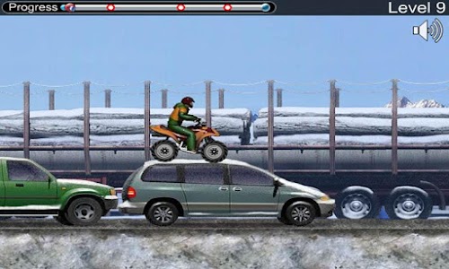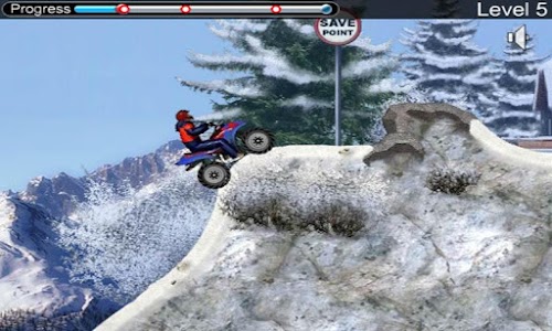 How fast could you possibly go in this winter wonderland of slippery snow? Race the icy hills in this side scrolling racing game with an all terrain vehicle! Ride your vehicle through the snow as you keep your four wheeler balanced and from tipping over. Good Luck!