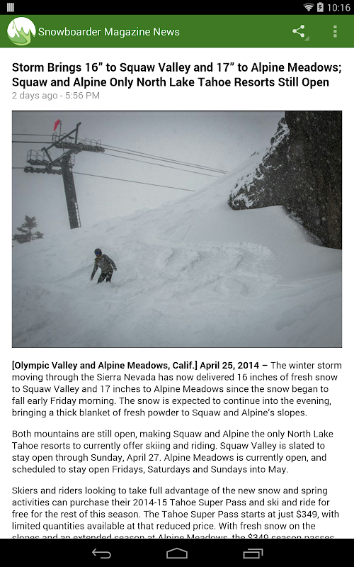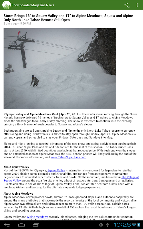 Snowboarding News is an app that delivers all the latest snowboarding news, photos, and videos for those times when you're not out on the slopes. Whether you're a pro, or just love watching, this app will surely keep in entertained with its 25 areas of content to explore.
