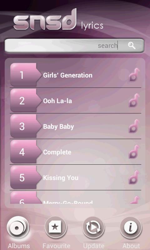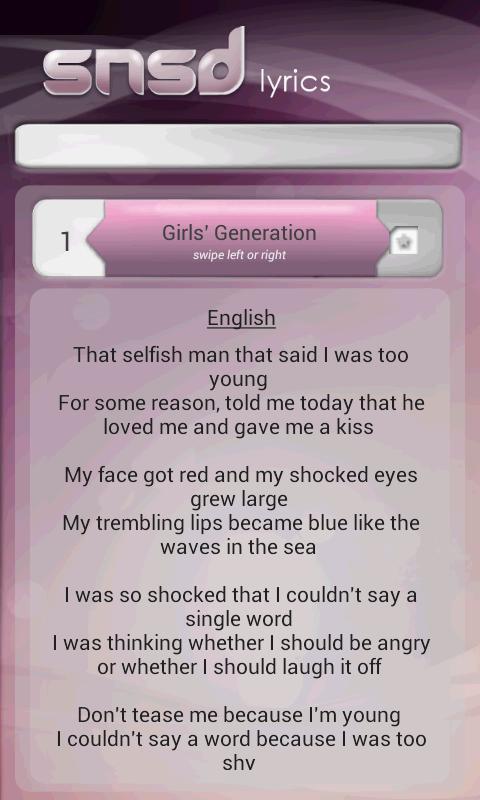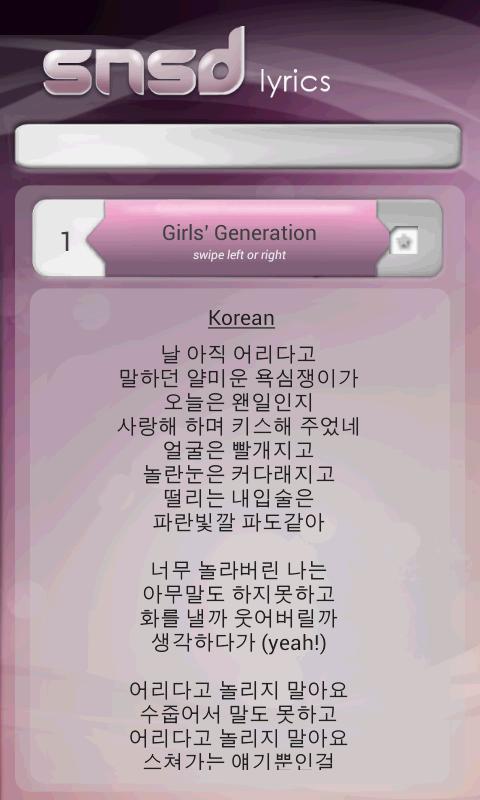 A lyrics app for SNSD (Girl's Generation / 소녀시대)