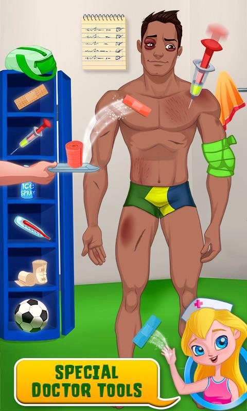 Super football heroes to the rescue! Show off your medical skills, Dr. X! Use real sports medicine techniques and tools to treat world-class soccer players! You can even fuel up with a healthy & delicious protein shake!