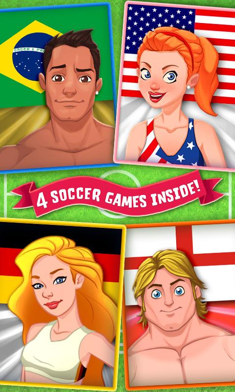 Select your favorite team — USA, Germany, England or Brazil —and let the games begin! Choose your athlete and get ready to kick soccer balls with the world’s best players!