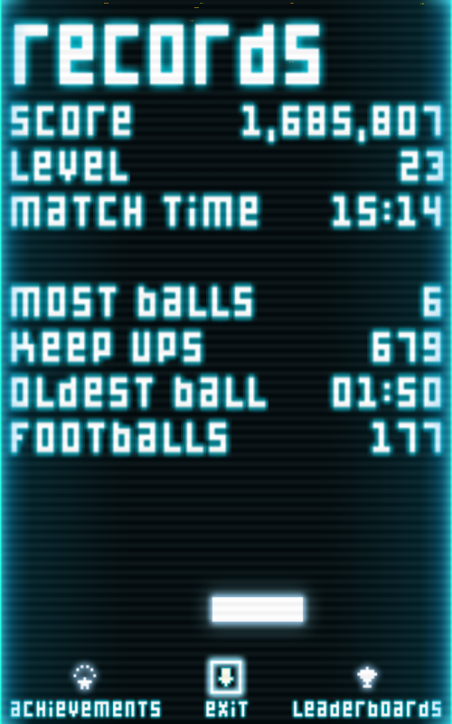 * 6 Leaderboards including highest score, highest level, oldest ball and greatest hits.