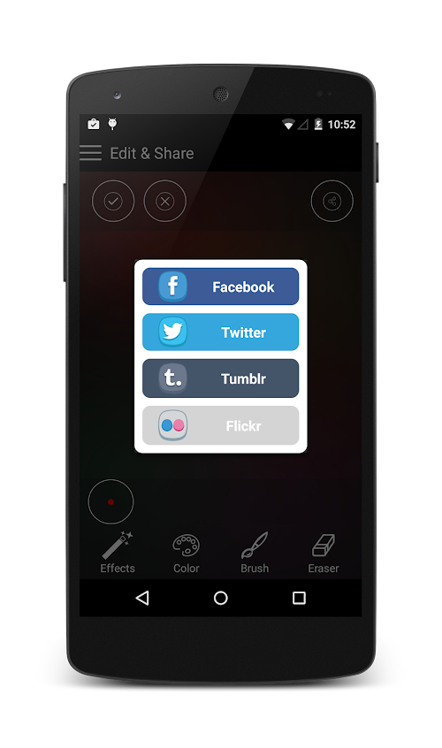 - Upload photo and video on Facebook, Twitter, Tumblr and Flickr