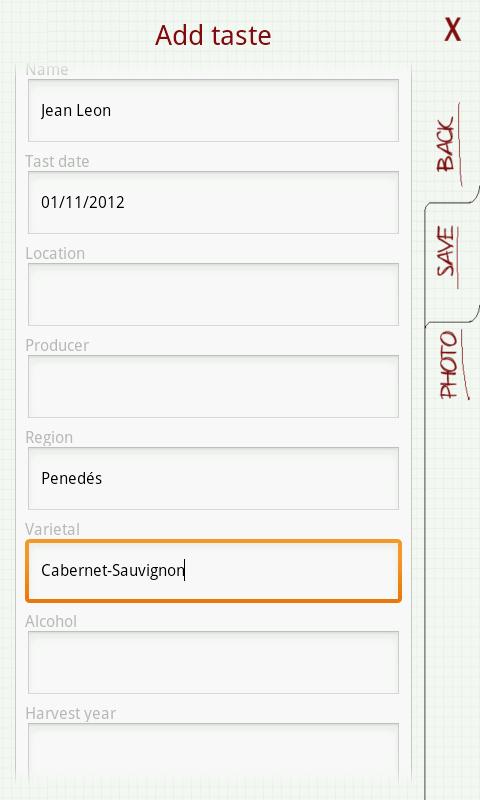 Based on a real tasting sheet and following menus, we have created an app for you to perform a simple yet highly relevant tasting of the wine you are drinking wherever you are. It also allows the app itself to take a picture attached to the tasting of the bottle or its label.