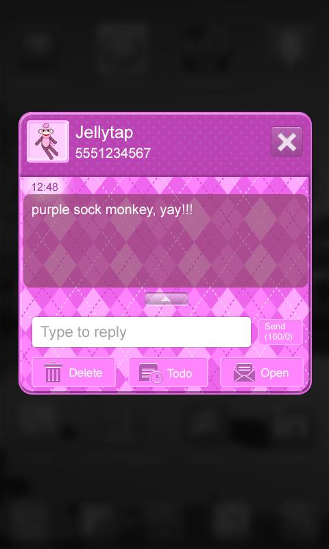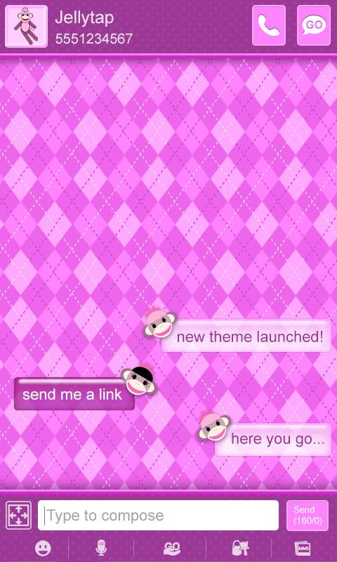 Keywords: go sms pro, sock monkey, polka dot theme, purple theme, argyle theme, cute theme, fun theme, girly theme