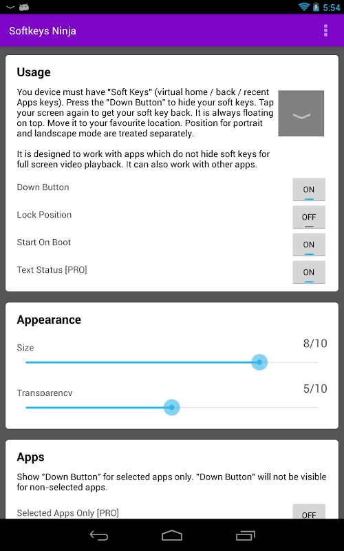★ Hide soft keys on demand anytime, anywhere (by pressing our floating "Down Button")