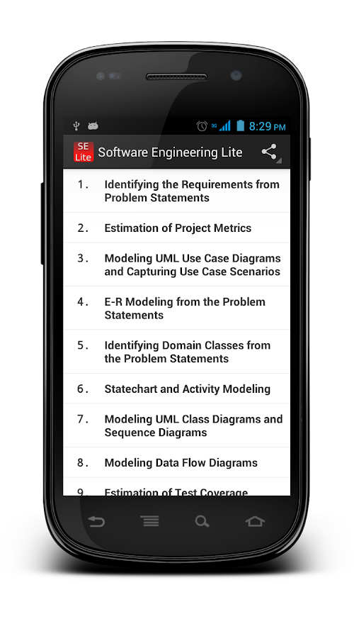 * Brief and to-the-point theory on multiple topics in Software Engineering and UML so as to optimize reading time in hand-held devices