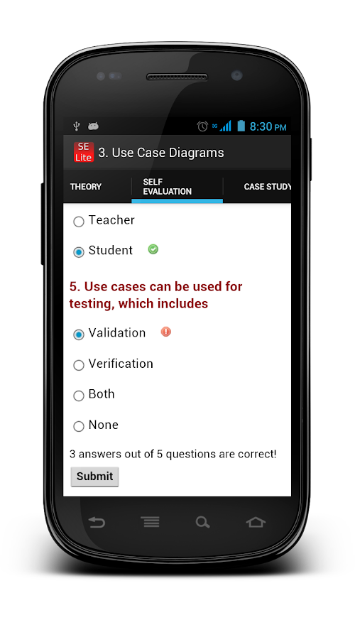 Note: Software Engineering Lite is an unofficial port of the popular Software Engineering Virtual Lab (http://vlabs.iitkgp.ernet.in/se/). The content used here are based on that used in the specified virtual lab, which has been released under a Creative Commons license. Contents are presented here as it is without any guarantee -- users are recommended to verify the same.