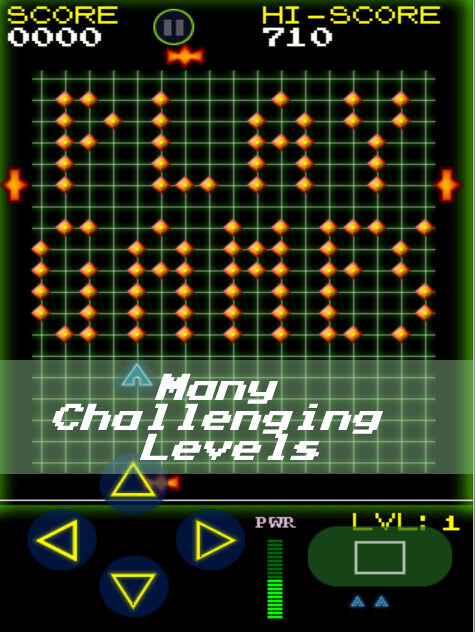 Race around the space grid collecting pacs while avoiding the assault of the menacing invaders on all sides. Boost your speed with Power ups collected. Complete the screen to advance to the next level. Retro style arcade graphics style to provide a nostalgic look from the 80s arcade gaming.