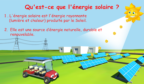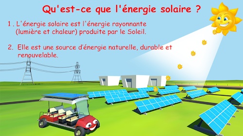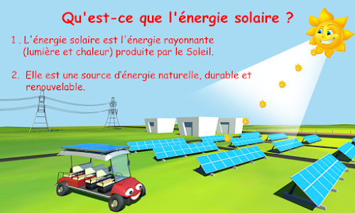 2- Diapositives éducatives sur l'énergie solaire.- Welcome to our world of solar energy where you can learn and watch a story in 3D in French while having fun.