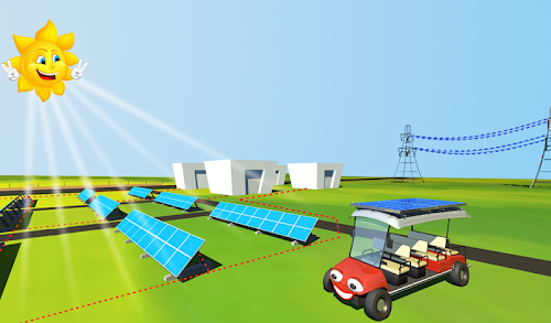 - L’histoire de la voiturette de golf et de l’énergie solaire est une animation en 3D durant laquelle nous allons voir comment notre soleil a aidé la voiturette à découvrir Smart City qui produit la plupart de son éléctricité à partir d’une énérgie propre qu’est l’énergie solaire.
