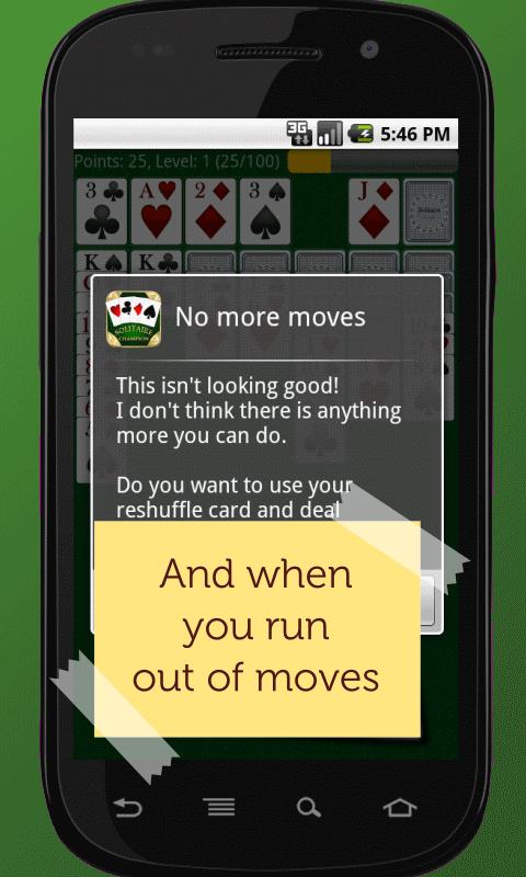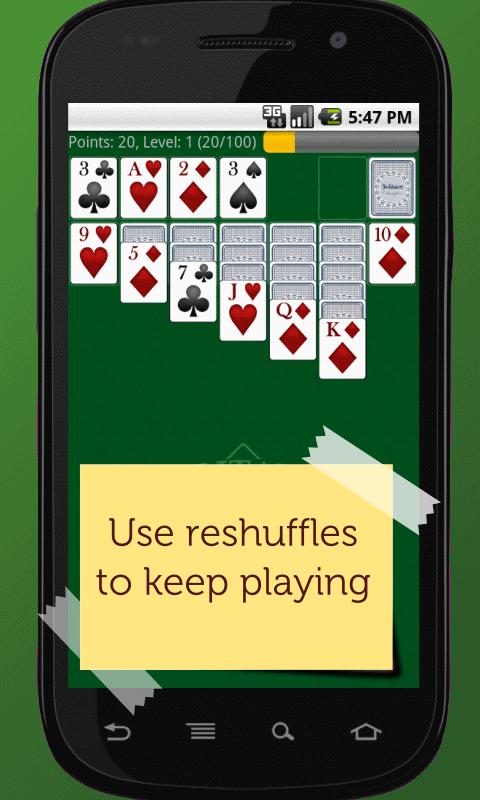 Solitaire Champion is an all time classic with a novel twist - finish levels and win reshuffle cards which you can use to mix up cards still remaining on the solitaire table when get stuck with your game.