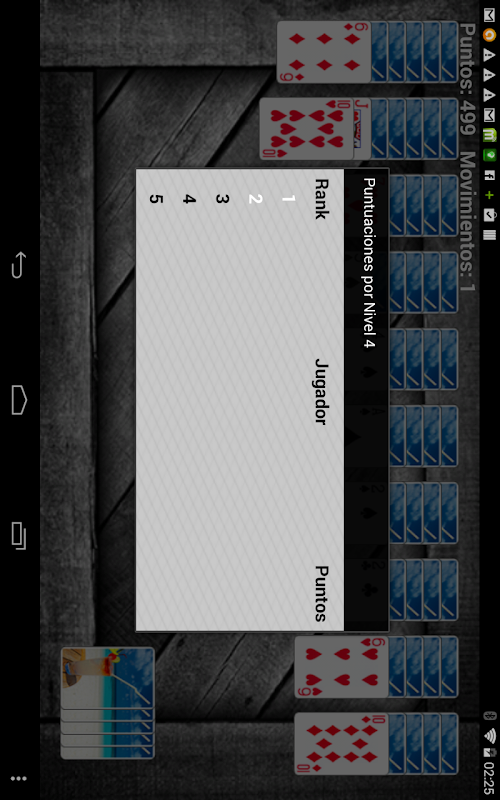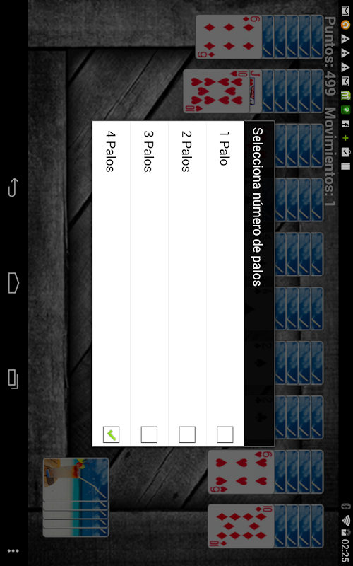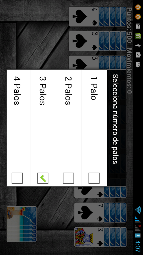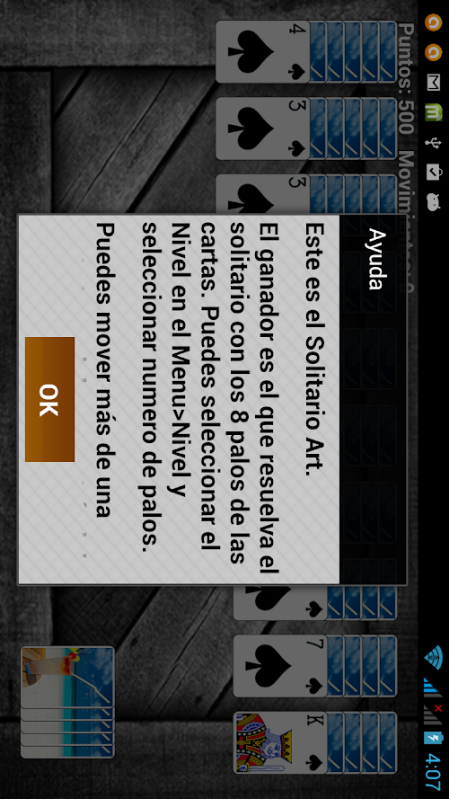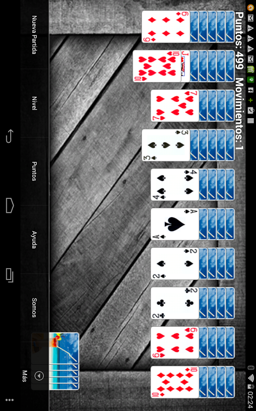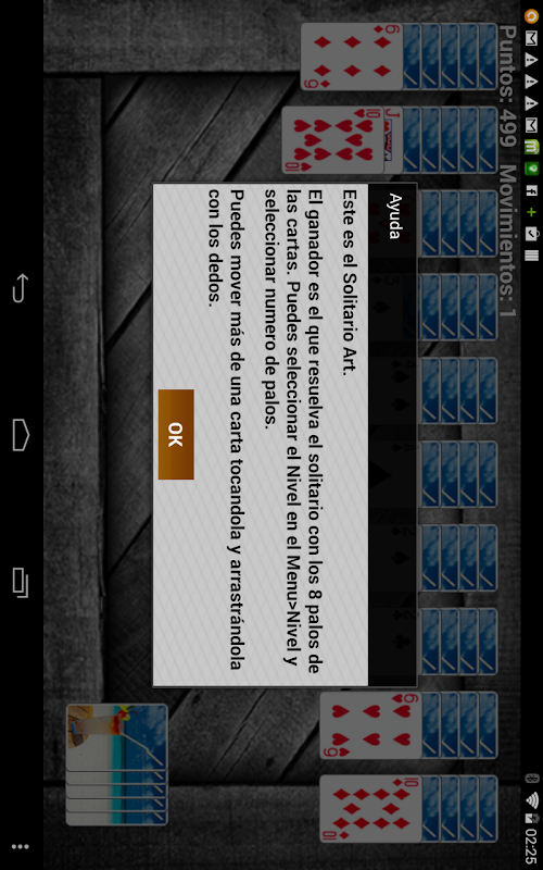 Juego de solitario con cartas de Poker y varios niveles de dificultad según el número de palos que se seleccionen. Puedes mover más de una carta seleccionándola y arrastrándola con los dedos a la posición que quieras. Un juego relajante e ideal para pasar el tiempo. Versión de pago y sin publicidad.Play solitaire with cards of Poker and several levels of difficulty based on the number of sticks you select. You can move more than one letter by selecting it and dragging it with your fingers to the position you want. A relaxing and ideal game to pass the time. Paid version without advertising.