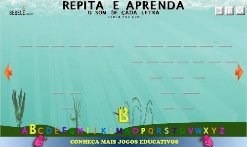 Brincadeira de várias etapas mostra o som de cada letra, onde as letras coloridas passeiam pela tela emitindo seu som, reúnem-se em grupos por semelhança de sons ou por ordem alfabética.