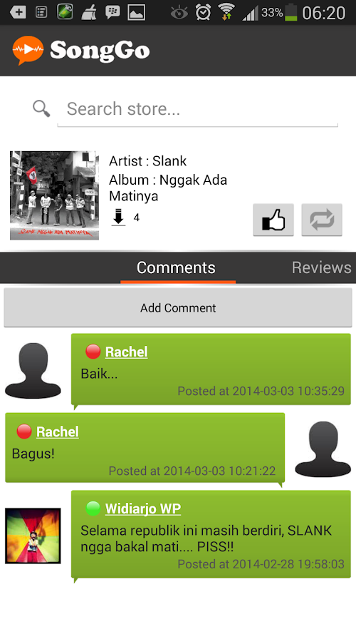 SongGo atau Song Go terserah bagaimana kamu mau menulisnya, adalah cara terbaru untuk menikmati musik dengan kualitas terbaik. Dengan fitur Social Media yang asyik, SongGo memungkinkan kamu untuk kenalan, diskusi seru, sharing atau hanya sekedar group chatting ke sesama SongGoers yang mendownload musik yang sama.