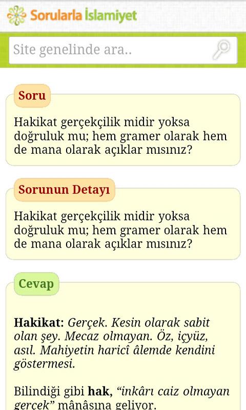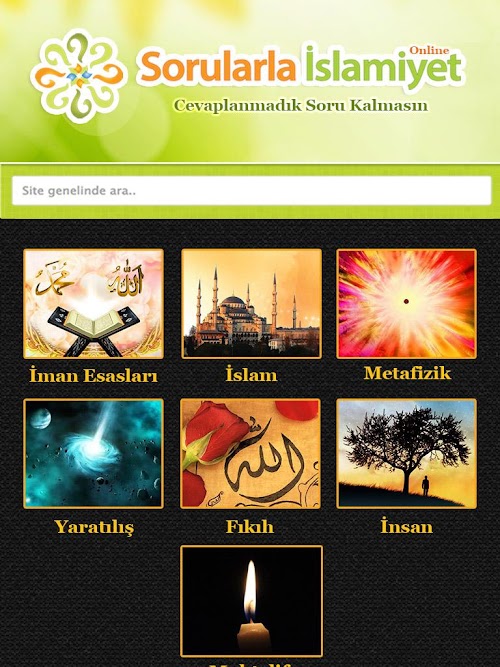Sorularlaislamiyet.com sitemizin mobil versiyonuna m.sorularlaislamiyet.com adresinden erişim sağlayabilirsiniz.Serving the mobile application through our website and provide quick access to your mobile device, you can read aratmalar immediate answer to the question that you want by