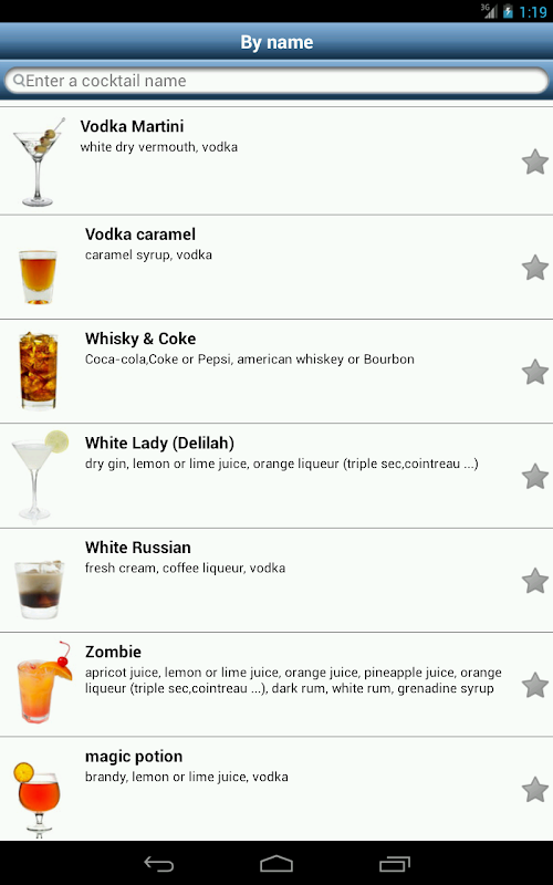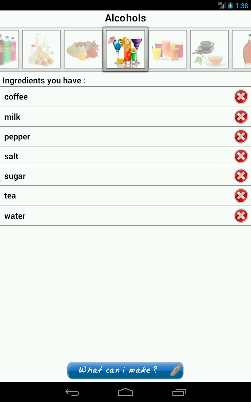 "My Inventory" function : if you have a list of ingredients in your hand and do not have any idea on what to make, the My Inventory option gives you the best of drinks recipes that you can make out of your current stock.