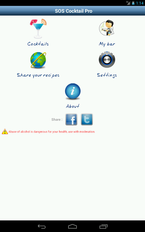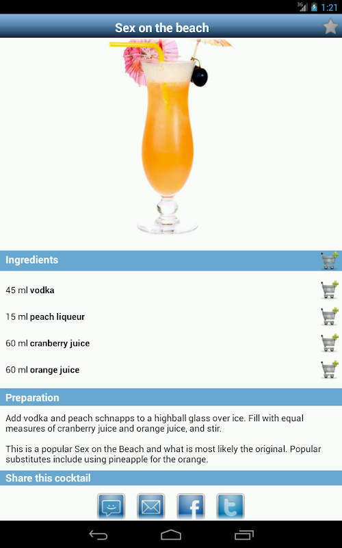 You can share the drinks recipes you like with your friends by sms,email,on Facebook or on Twitter.