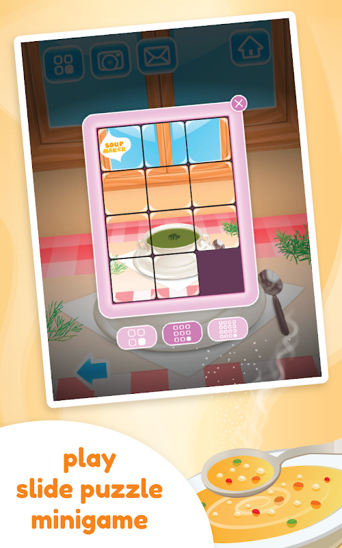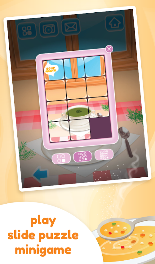 After making your soup, you can have fun eating it or playing a slide puzzle minigame, you can also take a snapshot of your masterpiece to show it to your family and friends.