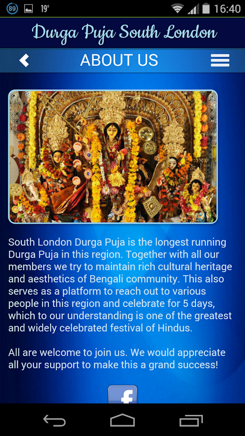 This Mobile Application gives you all information about Durga Puja celebration at South London and keeps you all updated while "on the go".