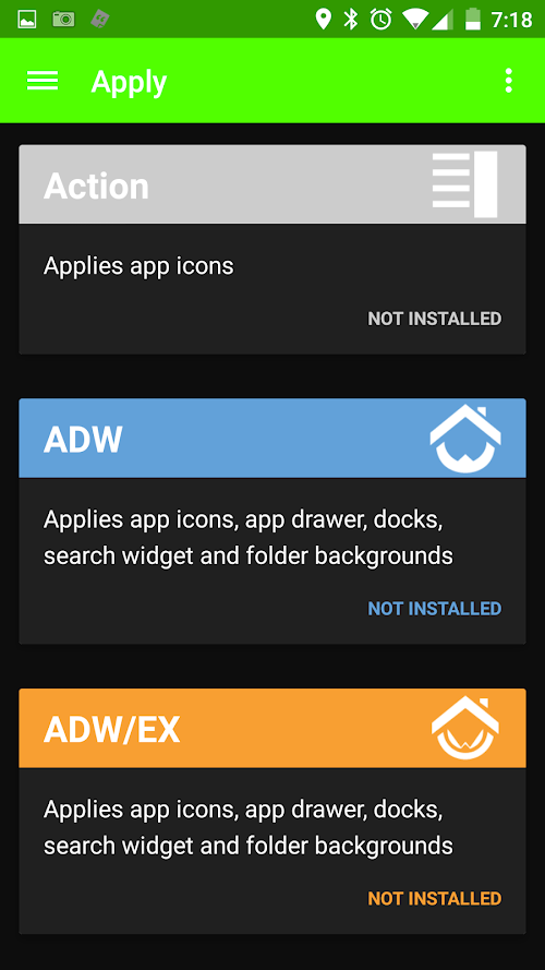 - Support for Apex, Nova, Next (Basic Icon Support), ADW, Smart, Action, TSF (Basic Icon Support), GoLauncher and a few others.