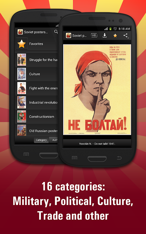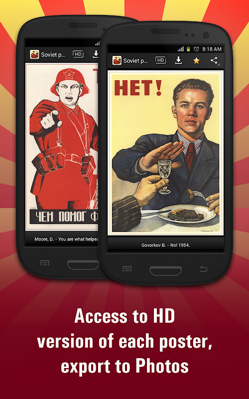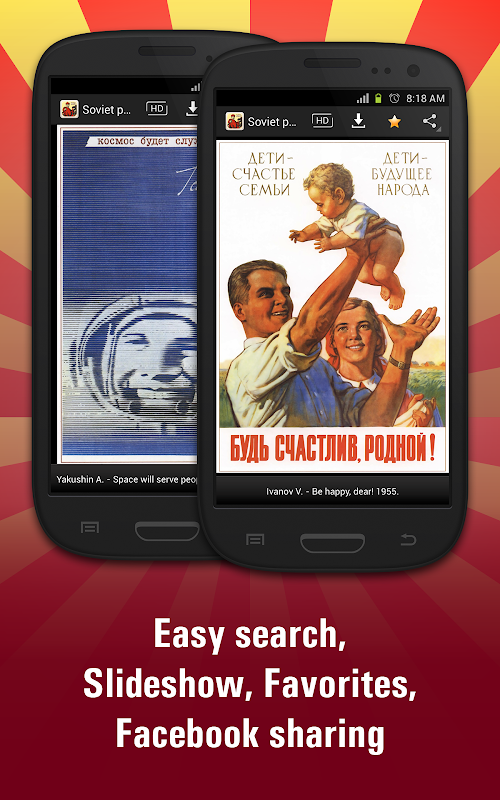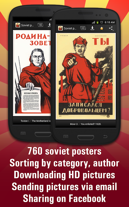 This version of Soviet posters HD Android App comes with one universal variant which will work on all the Android devices.
