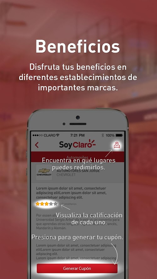 Soy Claro es un programa de beneficios de la compañía, dirigido para colaboradores de Claro que permite acceder a descuentos y cortesías que ofrecen los diferentes establecimientos de comercio a través de la presentación del carnet de empleado.