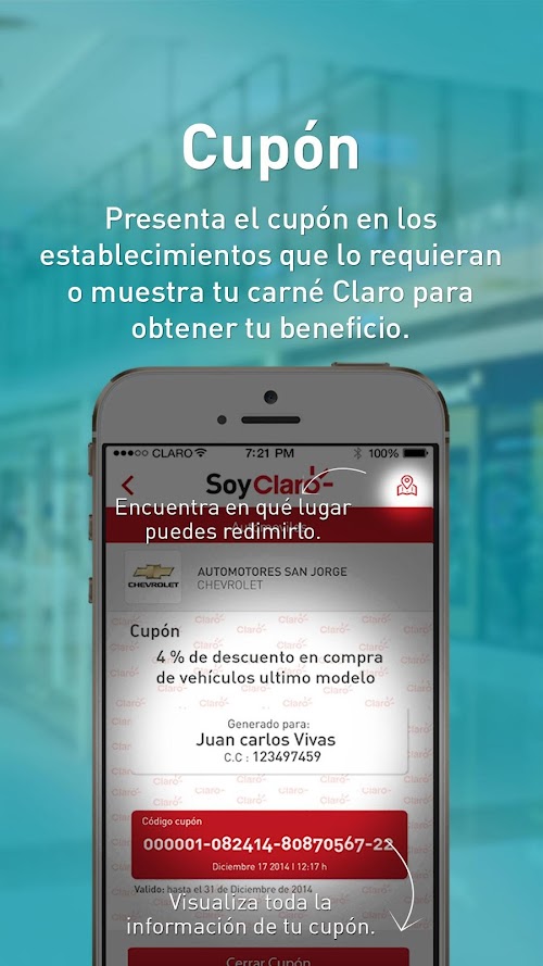 • Mensajes y Notificaciones: Recibe toda la información sobre nuestras últimas novedades, noticias y beneficios.I'm Sure is a program of company profits led to partners course provides access to discounts and courtesies offered by different commercial establishments through the presentation of the card used.