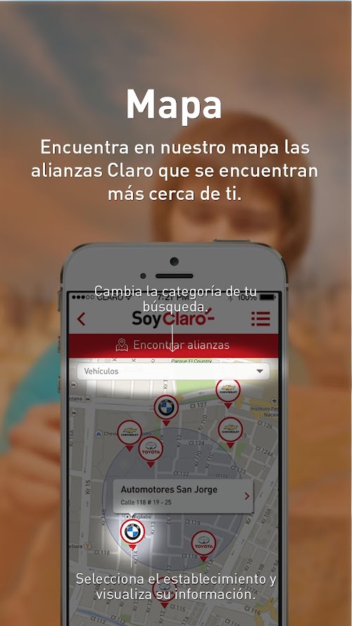 • Mapa de aliados: Encuentra la ubicación de todos los aliados cercanos a tu posición. Nota: para esta función es necesario activar el GPS de tu celular.