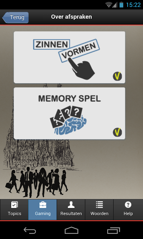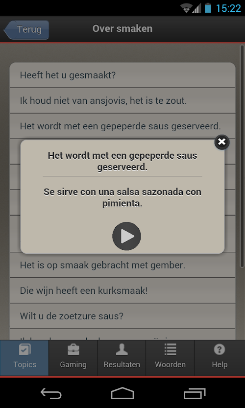 You also get a dictionary as a useful tool and you can test yourself with a game. You can share your results on facebook.