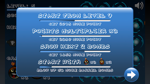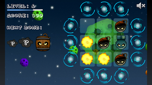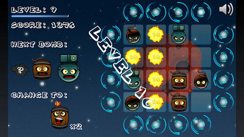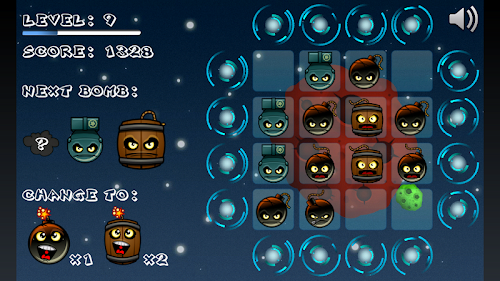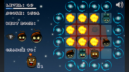 The rules to this brain/puzzle type game is simple: make groups of two or more bombs of the same type to make them explode, the more bombs connected the more point you get!