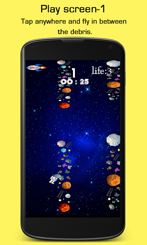 You are a dragon-hearted die-hard astronaut flying through the seamless enigmatic universe scattered with huge asteroids, meteors, comets, dust, rocks, smoke, magnetic waves, dangerous rays and anything scary you can imagine. You never know where you are and what can hit you any moment in the deep blue fathomless sea of stars. Your job is to swim through this debris and help phantom reach the planet called as Nova.