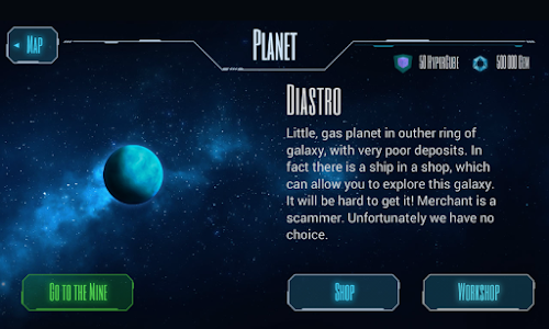 Reaching the goal and passing the following planets is only possible by gaining resources in mines and upgrading your spacecraft.