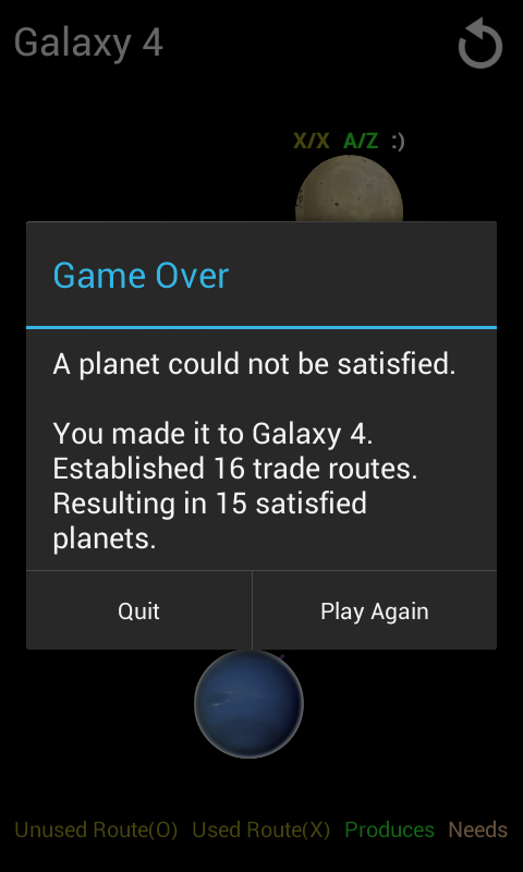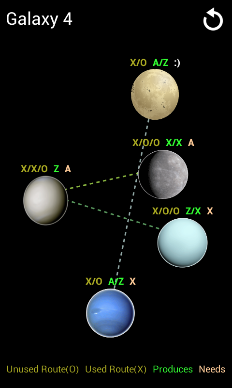 You are a space merchant, and as such, you must set up trade routes between planets. Each planet has resources it needs and resources it produces. Your goal is to travel to different galaxies and establish as many trade routes as possible.