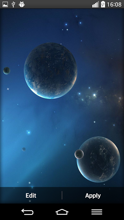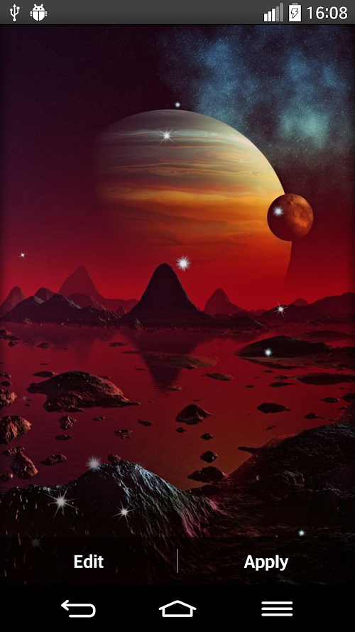 ''Planets live wallpaper'' takes you on a cruise around the Solar System! Put on the astronomer suit and prepare for the brightest planet in outer space - Venus! Find out why Mars is associated with war! Visit icy Pluto and look out for dangerous mixture of gases on Jupiter and Neptune! Are there more planets to see? Of course there are! And don't worry! You will see all of them because this ''space live wallpaper'' is like a perfect spaceman or a planet finder that is your personal guide through cosmos!